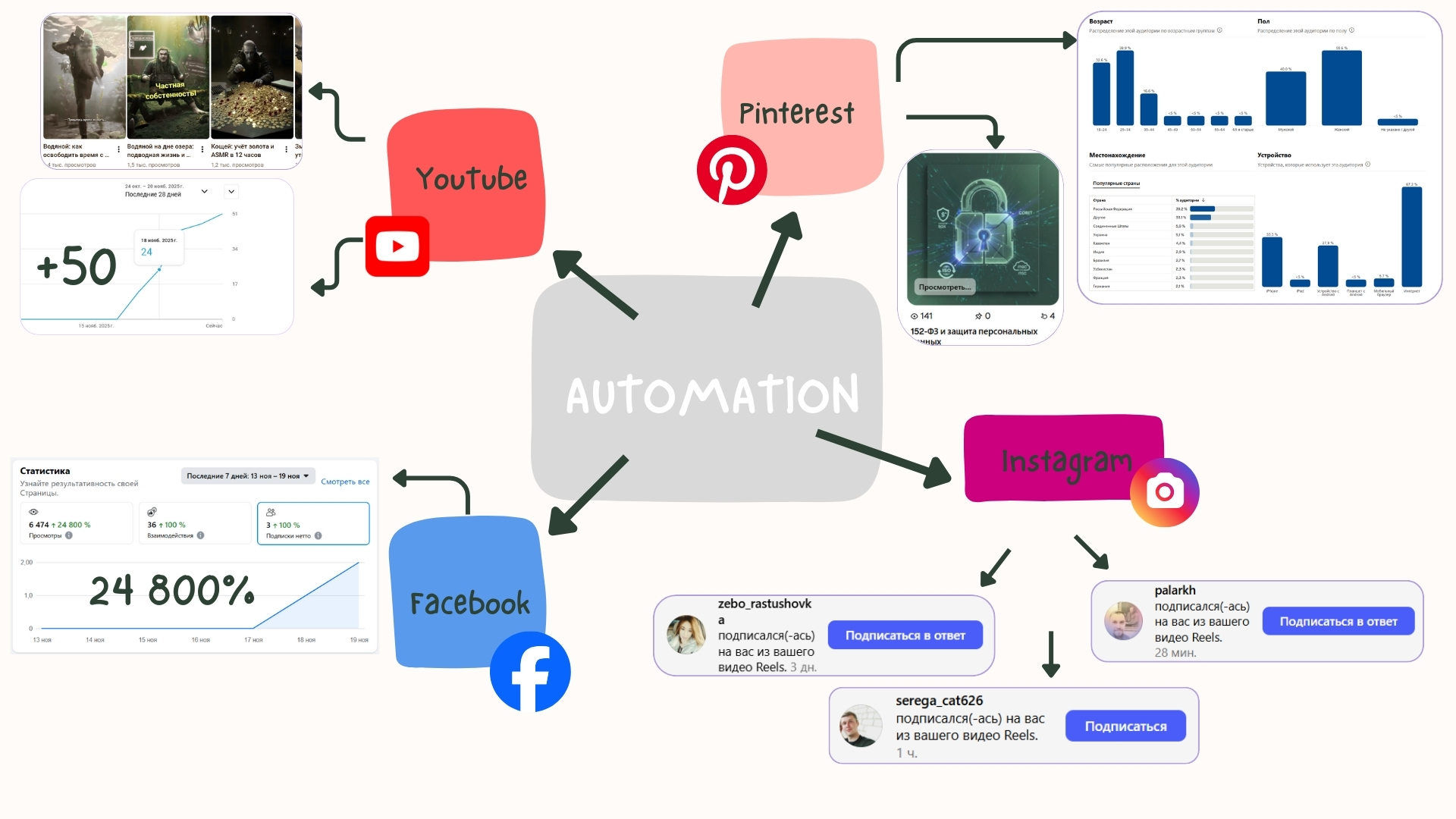 • воронки, боты, автопостинг,